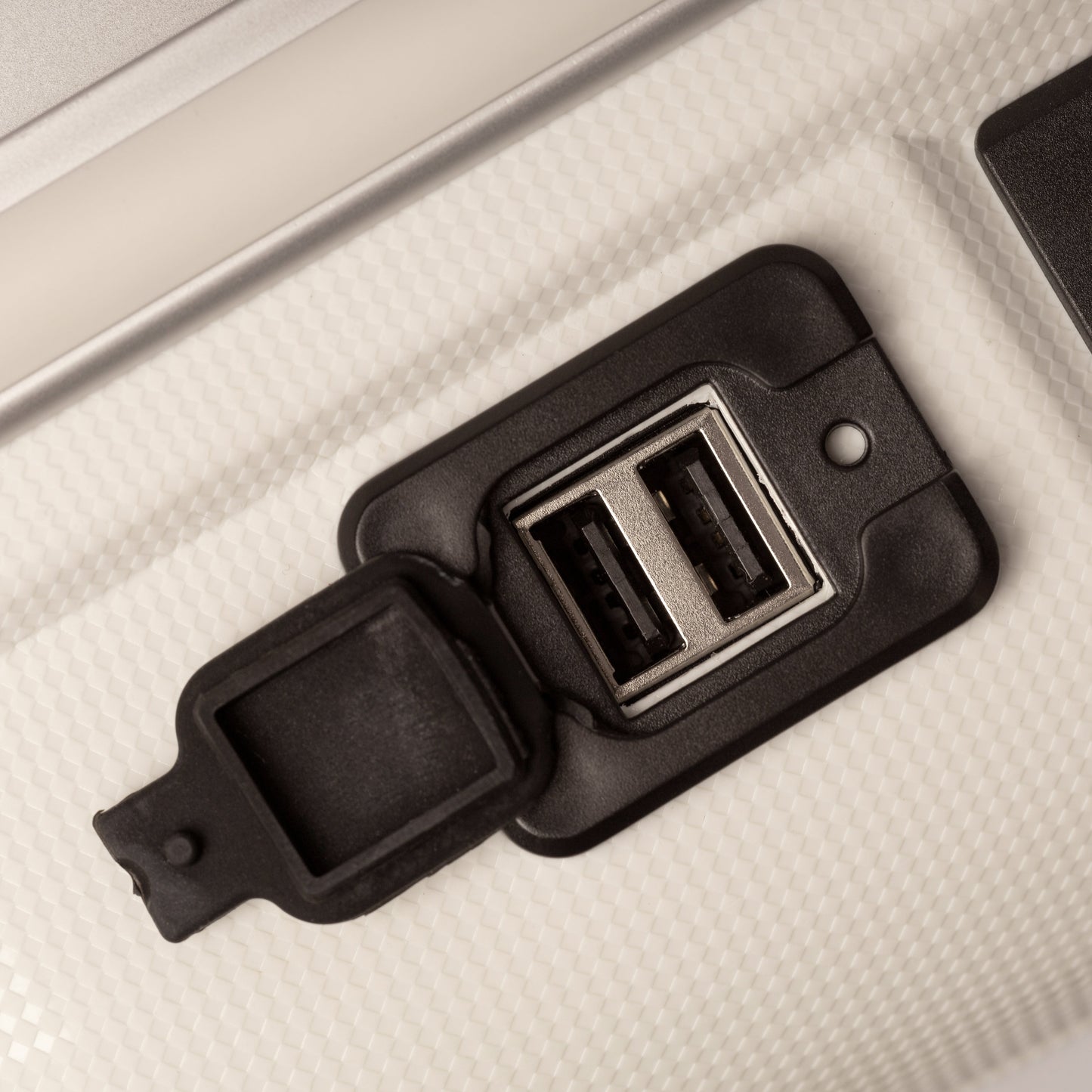 The dual USB charging port allows you to conveniently charge your devices while travelling.